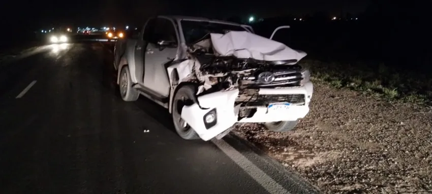 El personal policial tomó conocimiento de lo que había sucedido y se acercó hasta el lugar del siniestro, donde corroboraron que la camioneta Toyota Hilux color blanco había arrollado a un toro que se encontraba suelto por la ruta.