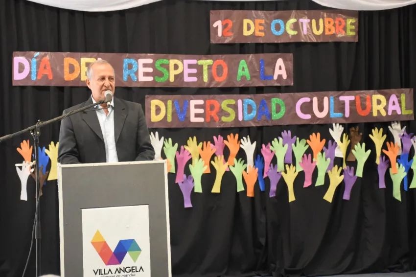 Esta mañana, el intendente de Villa Ángela, Adalberto Papp, presenció el acto en conmemoración del Día del Respeto a la Diversidad Cultural realizado en el Instituto de Educación Superior de la ciudad. "Este 12 de octubre nos tiene que impulsar a seguir trabajando juntos, sin divisiones, siendo todos hermanos hijos de Dios. Este encuentro es una oportunidad única donde estamos todos reunidos sin conflictos y buscando mejor calidad de vida. Es penoso lo que cuenta la historia y no debemos olvidarla con el objetivo de construir un presente y futuro mejor", enfatizó.
