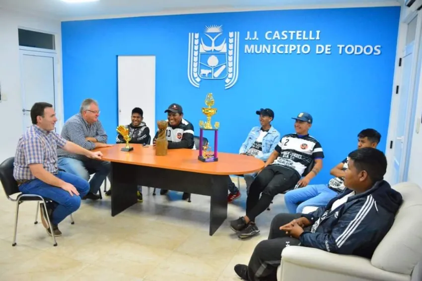 Este jueves, en el despacho municipal, el intendente de Castelli, Pio Sander, y el secretario de Gobierno, Ismael Pablo Barnes, recibieron a los ganadores de la Copa Takaysat disputada este fin de semana en la localidad de Miraflores.
