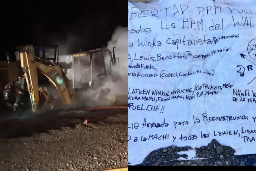 En Villa la Angostura, los mapuches atacaron a un sereno, incendiaron varios tractores que eran utilizados para obras públicas y dejaron una carta con un mensaje amenazante.