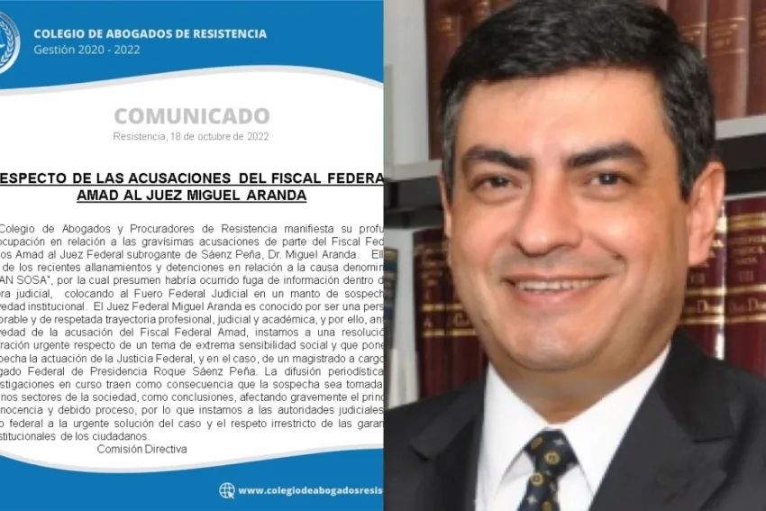 En este aspecto, el Colegio de Abogados y Procuradores de Resistencia lanzó un comunicado y se pronunció respecto a la situación, por la que expresaron "profunda preocupación" por las "gravísimas acusaciones" de parte del fiscal federal, Carlos Amad, el fiscal federal que lleva adelante la causa.