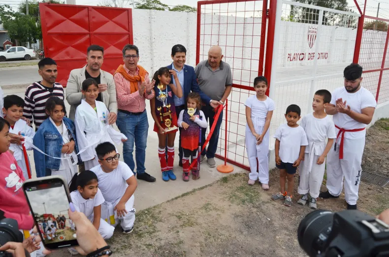 En igual sentido, indicó que "se quitaron las tribunas antiguas del estadio, se limpió y el espacio restante fue transformado en un gran playón de usos múltiples, que será aprovechado por los vecinos y vecinas para realizar reuniones, actos y actividades de camaradería, además los niños y niñas podrán practicar hockey, voley y taekwondo".