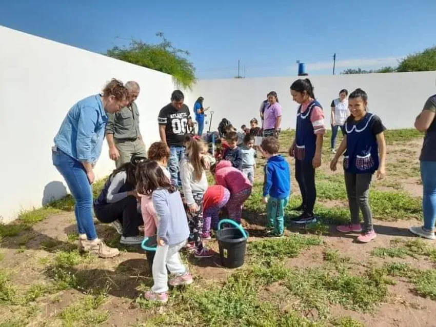 "Con la idea de crear conciencia ambientalista, dar a conocer los beneficios que ofrecen los árboles al ambiente, a los animales y a los seres humanos", el equipo de forestación llevó el mensaje al CDI haciendo partícipe a niños y niñas de esta actividad.
