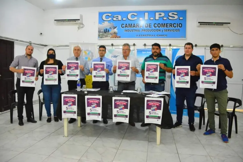 El Intendente Pio Sander, acompañado del Presidente de la Cámara de Comercio Guerrero Félix y el Gerente de la sucursal local del Nuevo Banco del Chaco Walter Gaczek realizaron la presentación de la promoción aniversario con tarjeta tuya.