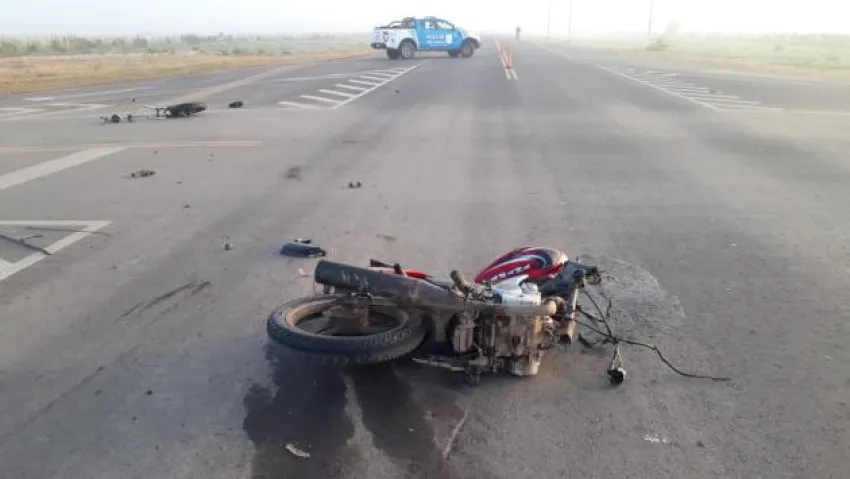 El accidente de tránsito sucedió anoche alrededor de las 21 horas en Ruta Nacional N° 11 en el kilómetro 998, dónde una moto 110 cc que llevaba un carro en la parte trasera fue colisionada por una camioneta Chevrolet S-10.
