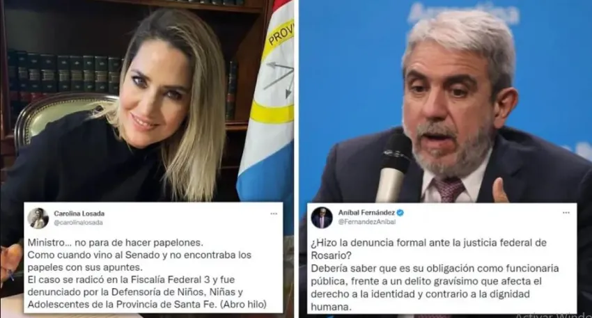 Pero Losada salió al cruce y plasmó un largo hilo de tuits para defenderse. "Ministro… No para de hacer papelones. Como cuando vino al Senado y no encontraba los papeles con sus apuntes. El caso se radicó en la Fiscalía Federal 3 y fue denunciado por la Defensoría de Niños, Niñas y Adolescentes de la Provincia de Santa Fe", comenzó la legisladora.