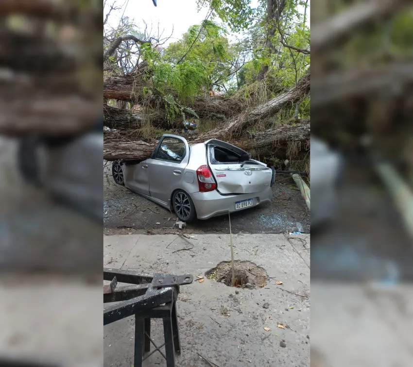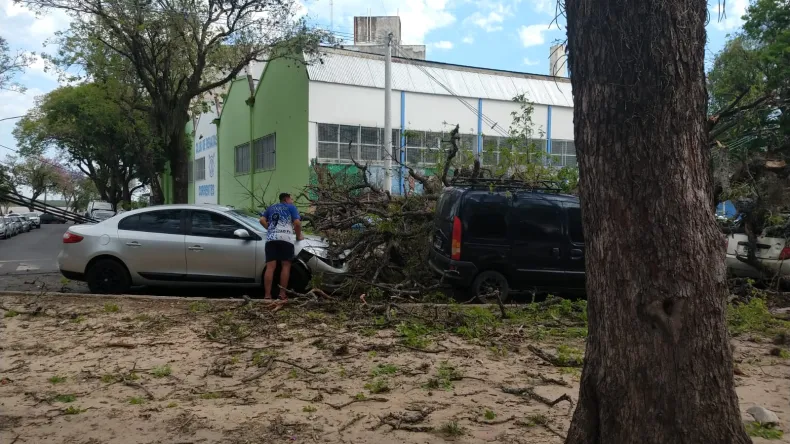 En la mañana de este miércoles, Debido al fuerte viento, un árbol de grandes dimensiones cayó en pleno parque Mitre de Corrientes dañando, al menos, cinco autos que estaban estacionados.
