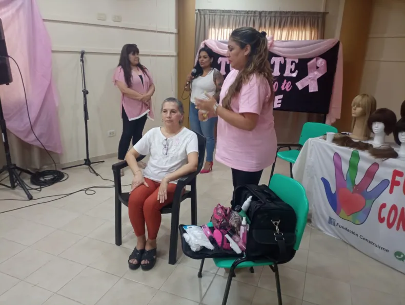 Durante el encuentro, se realizó una charla sobre el tema, orientada a familiares y personas que padecen cáncer de mamas participaron de la charla Laura corro y Cristian Rivas de la fundación Construirme quienes estuvieron a cargo de la entrega de pelucas y la donación de cabello; Paola Gadien que habló sobre su trabajo de maquillaje en pieles oncológicas y maquilló a Susana a quien se le entregó también una peluca, la señora Rosy Gadien que junto a su equipo hicieron un show de zumba y Cecilia Herrera que comentó sobre los beneficios de la dermopigmentación en pacientes con cáncer para cerrar la actividad.