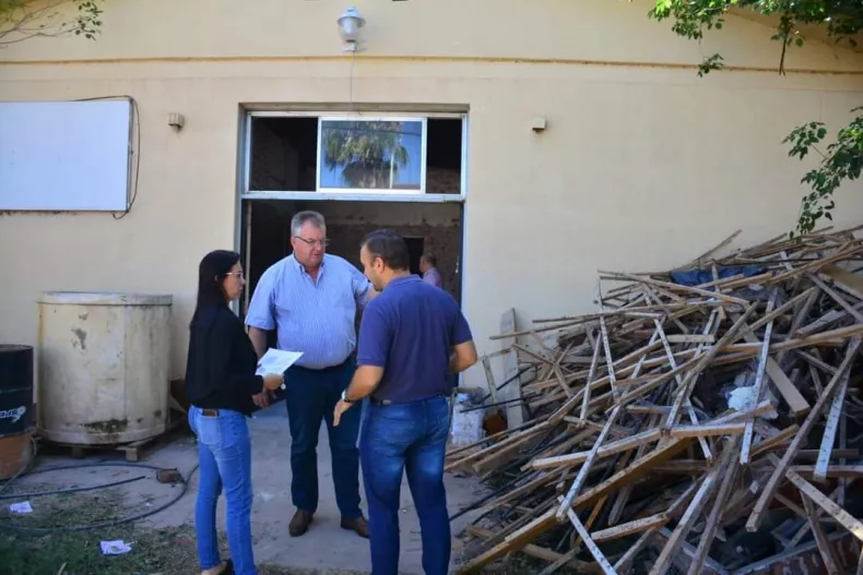El intendente Pio Sander, junto a la Secretaria de Obras Publicas Natalia Aguilar y el concejal Juan Carlos Ortiz, recorrieron el avance de los trabajos que se llevan adelante en las instalaciones del viejo Hospital donde, días atrás se dieron inicio a los trabajos de remodelación de dicho espacio, donde funcionará la División de Violencia Familiar y de Género.