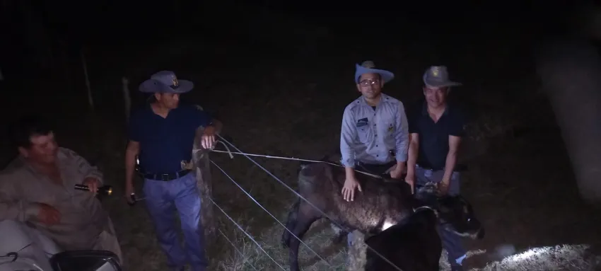 De madrugada la policía sorprendió a cuatreros que intentaban llevarse dos animales vacunos