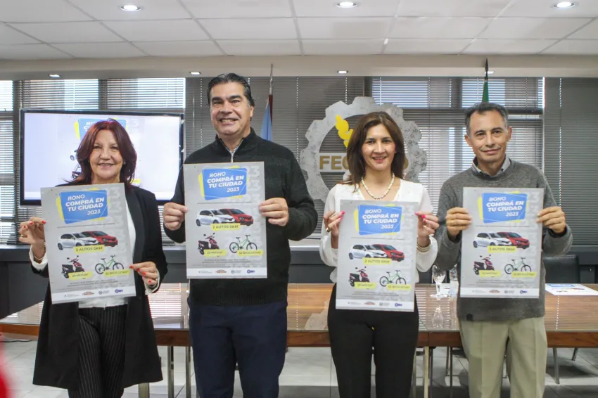 "Comprá en tu ciudad": presentaron un bono para participar de 2 autos, 25 motos y 25 bicicletas