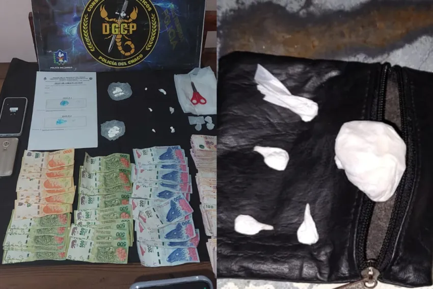 Una vez allí y luego de que la autoridad judicial leyera a esta pareja el acto que realizarían los efectivos en su vivienda, iniciaron la inspección logrando encontrar 8 envoltorios de diferentes tamaños conteniendo una sustancia blanca que, al ser sometida a prueba de campo con reactivos químicos dio como resultado que se trata de Cocaína, con un peso de 11,2 gramos, junto a varios billetes que dieron la suma de $30.870, recortes de bolsas y tijera con restos de la misma sustancia hallada.