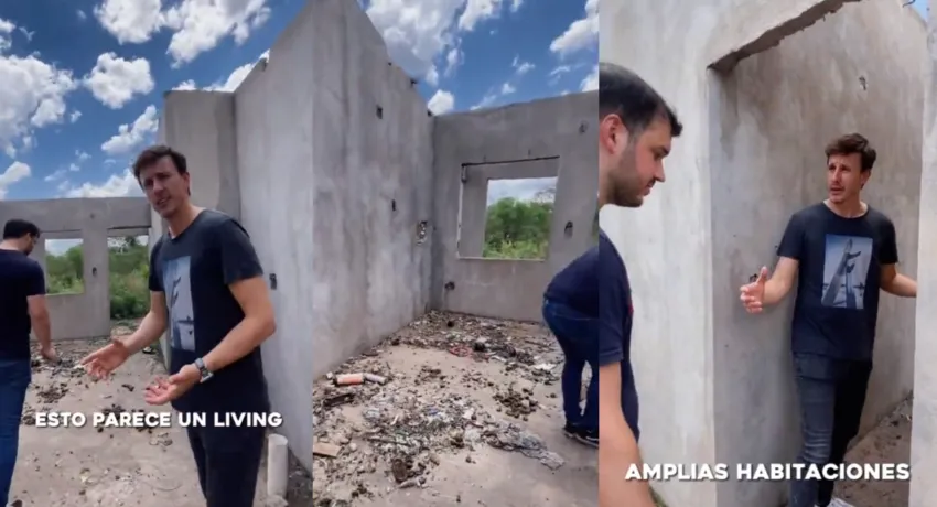 Seguidamente, entran en escena los políticos de Republicanos Unidos, momento que es aprovechado para comentar una ironía sobre el estado de las viviendas sin terminar. "Living amplio", señala Moritán, a lo cual Gyoker precisa: "Mirá, acá hay un control de televisor".