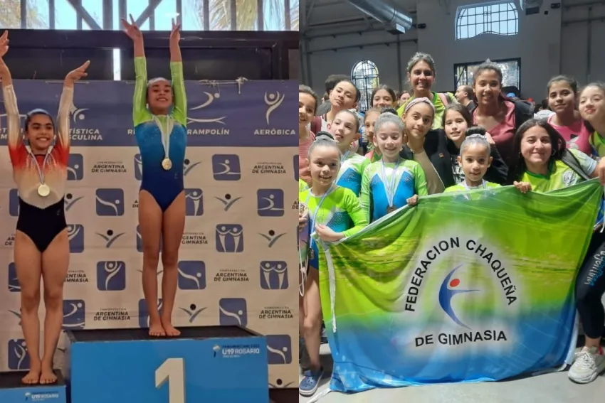 En las nacionales de gimnasia artística, se compite en 4 aparatos: biga, suelo, salto y paralelas, según detalló el papá de Mia, y la niña se desempeña en todos. Finalmente, este sábado, Mia se colocó tres medallas en representación de Chaco, un primer puesto y un segundo puesto en suelo, y una medalla grupal.