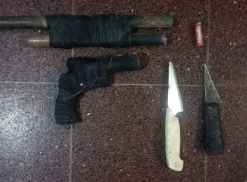 Tras controlar la situación, los efectivos detuvieron a personas de 30, 32, 27,24 y 32 años. Además, secuestraron dos cuchillos y un arma de fuego de fabricación casera "tumbera" con un cartucho calibre 12.