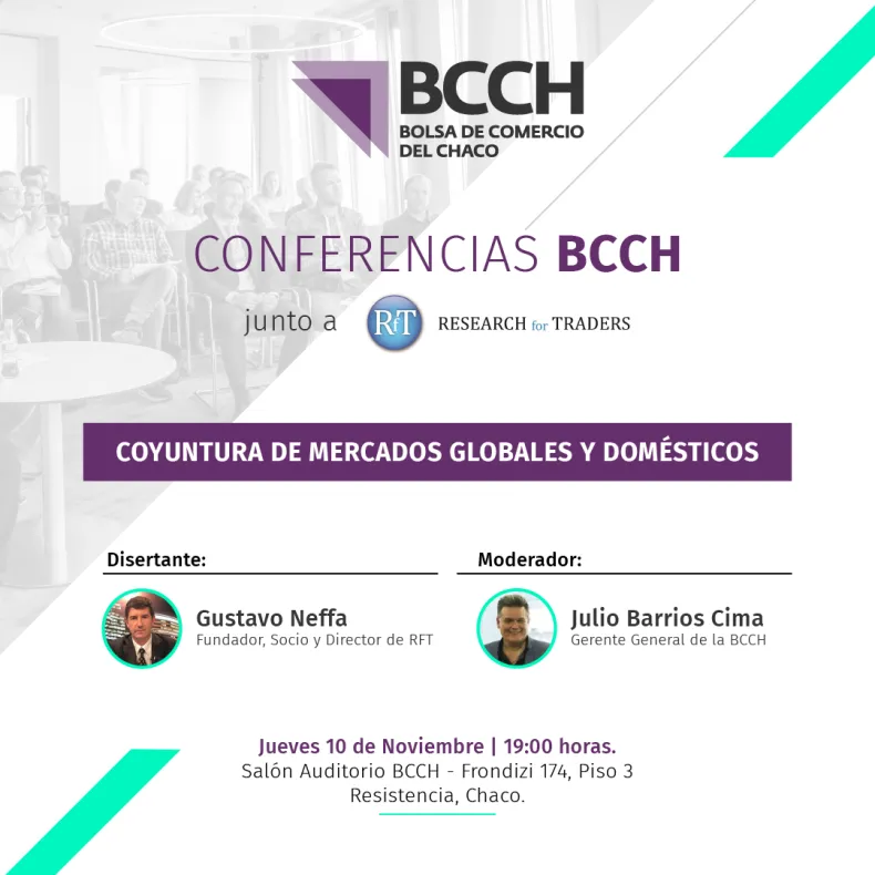 La cita es para este jueves 10 de noviembre a las 19:00 horas en el Salón Auditorio de la Bolsa de Comercio del Chaco (Frondizi 174, Piso 3°) en la ciudad de Resistencia – Chaco. Para poder participar de este evento es necesario realizar una breve inscripción en https://bit.ly/BCCH_Conferencia_Rftb