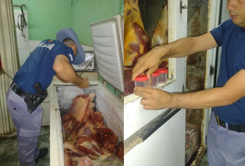 Con la premura del caso, debido a que uno de los animales faenados estaba enfermo, se solicitó la colaboración de personal de Bromatología Municipal para la inspección del comercio. Un médico veterinario de la Policial y un inspector de Bromatología Municipal inspeccionaron la cámara frigorífica y freezer, y constataron que existía producto cárnico sin sello bromatológico que indique que recibió el control sanitario correspondiente. Además, se constató que uno de los animales presentaba lesiones compatibles con tuberculosis perlada.