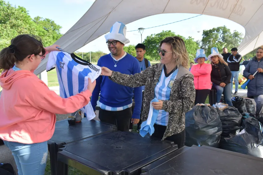 Al respecto, la secretaria municipal de Desarrollo Humano e Identidad, Laura Balbis, expresó: "Desde mucho antes del inicio del partido contra Arabia se acercó la gente a nuestros puntos de aliento, trayendo botellas de plástico para canjearlos por gorros o camisetas de la selección".