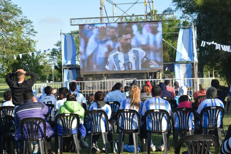 Instalaron en Resistencia pantallas para ver el partido y cambiar camisetas por botellas de plástico