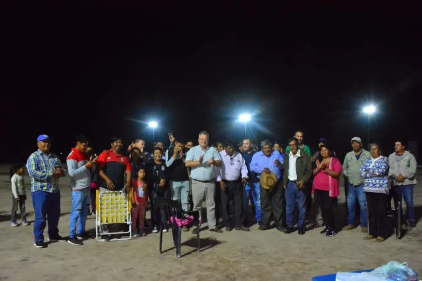 El Intendente Pio Sander, acompañado del secretario de Gobierno Ismael Pablo Barnes, el secretario de Desarrollo Social Javier Bender y el Subsecretario De Deportes Roberto Scheffer, participaron de una importante reunión con la comunidad de la Chacra 31 y dejaron formalmente habilitada la nueva iluminación de la cancha de fútbol del barrio.