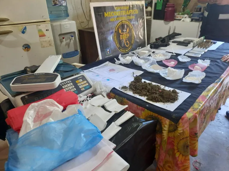 Momentos después, los efectivos encontraron 11 envoltorios de cocaína el cual arrojó un peso total de 748 gramos, una bolsa con cogollos de marihuana dando un peso de 98 gramos y 4 balanzas, además de teléfonos celulares.