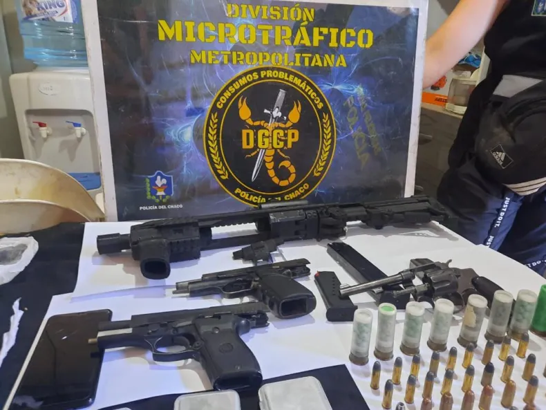 Allanamiento, detención y secuestro de drogas, además de un gran arsenal de armas de fuego
