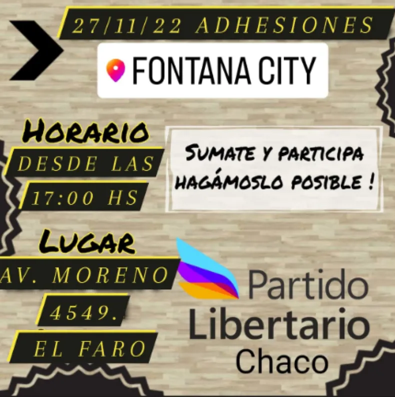 El Partido Libertario Chaco se reunirá en Fontana para transmitir sus propuestas políticas