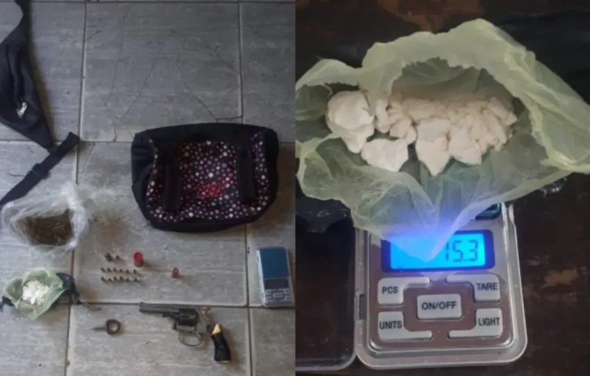 Al tomar contacto decidió requisarlo y allí se topó que en el interior se hallaba una riñonera, un arma de fuego calibre 22 junto a 12 cartuchos, una vaina servida, una balanza de precisión y una bolsa de nylon que contenía estupefacientes.