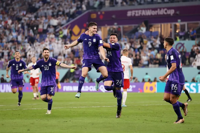 La Selección le gana a Polonia 2 a 0 con goles de Alexis Mac Allister y Julián Álvarez por la última fecha del Grupo C del Mundial de Qatar 2022 ante Polonia en búsqueda de los octavos de final de la Copa del Mundo en el estadio Stadium 974 en Ras Abu Aboud.