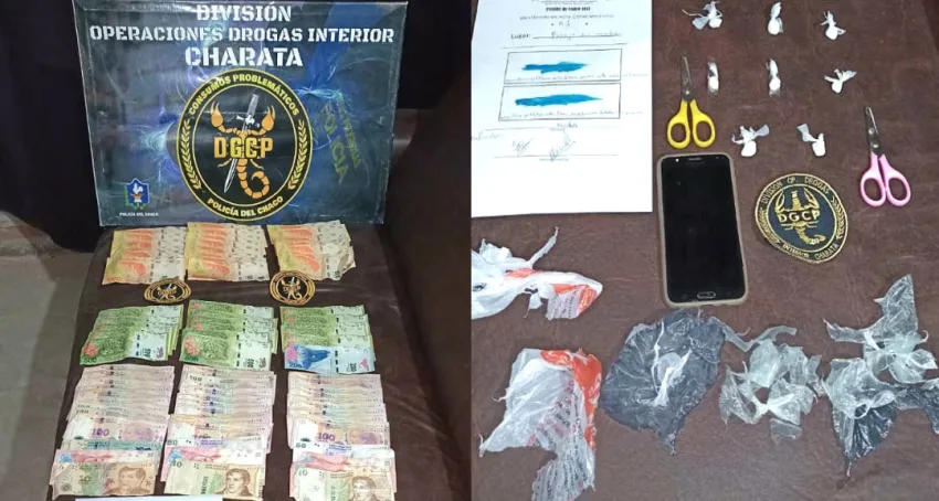 Al finalizar, secuestraron un total de 8 envoltorios con una sustancia blanquecina, dando positivo en el test de drogas. También incautaron la suma de 36 mil pesos, dos tijeras, recortes de bolsas utilizadas y un celular Samsung J7.