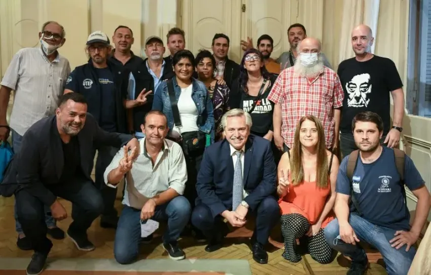 De la reunión en la Casa Rosada participaron Alberto Fernández, la ministra de Desarrollo Social, Victoria Tolosa Paz, el secretario general del Movimiento Evita, Emilio Pérsico el secretario general de la UTEP, Esteban Castro.