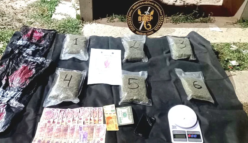 En su interior, los policías encontraron seis envoltorios transparentes conteniendo una sustancia vegetal, que resultó ser cogollos de marihuana. Al realizar el peso final, arrojó la cantidad de 1 kilo 622 gramos. De esa manera procedieron al secuestro de la marihuana, además de una balanza de precisión, la suma de 3 mil pesos y un teléfono celular.