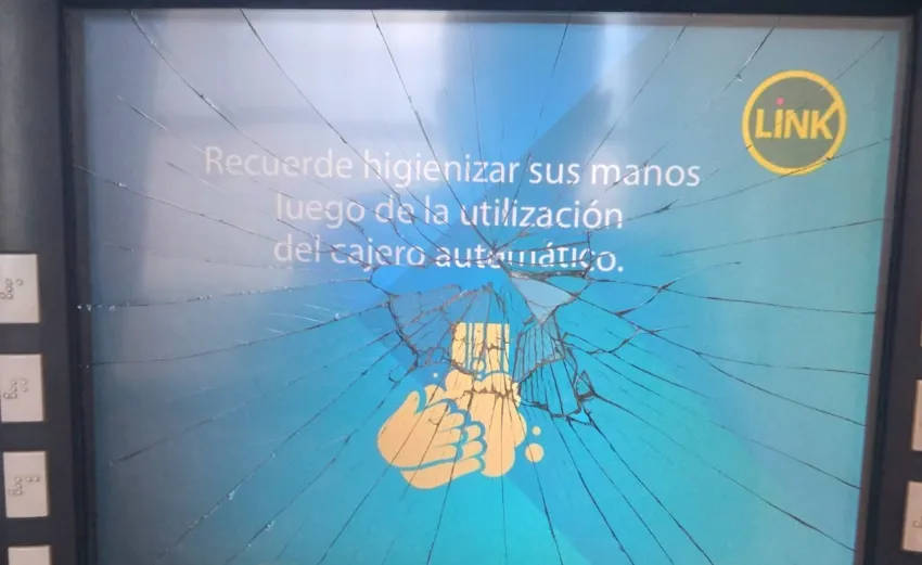 Personal del Servicio Adicional constató los daños ocasionados al protector pantalla del cajero automático de dicha filial y solicitó la colaboración de personal de la División Investigaciones Complejas Interior Villa Ángela para identificar al violento.