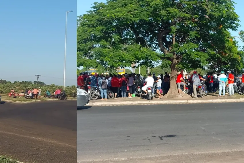 En la misma línea, personas del "Movimiento Popular Darío Santillán" se reunieron en la rotonda de avenida San Martín y Ruta N°16, donde reclaman por el pago de aguinaldos.