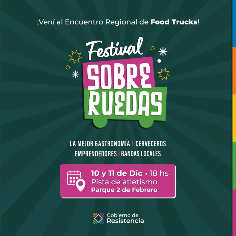 El encuentro regional de food trucks, denominado "Festival sobre Ruedas", se realizará este sábado 10 y domingo 11 de diciembre desde las 18 horas en la pista de atletismo del Parque Intercultural 2 de Febrero. El gobierno de Resistencia impulsa estas actividades a fin promover la economía local y de emprendedores.