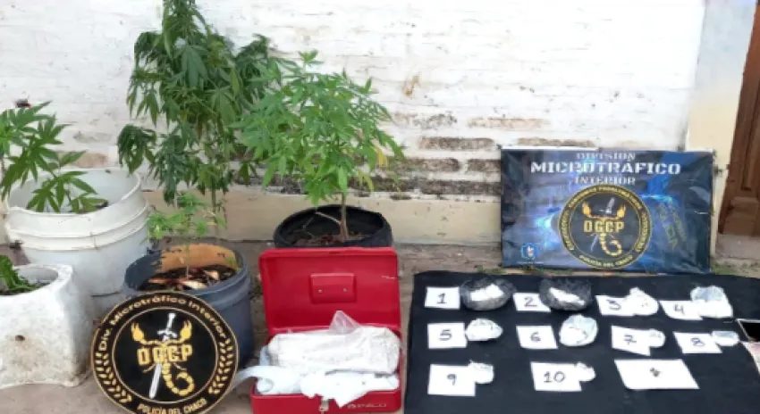 En otro sector de la casa, encontraron 5 plantas cannabis sativa, una balanza de precisión y un teléfono celular.