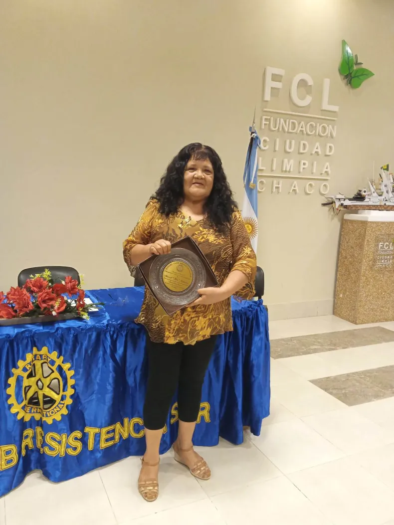 En esa línea, desde Rotary relataron con cariño la labor y el trabajo de "Tina": "Celestina Maciel, más conocida como "Tina", es una joven mujer de solo 61 años, totalmente imperceptibles en su sonriente rostro. Nació en General Roca en el interior chaqueño y es madre de dos hijos que la vieron terminar sus estudios secundarios y comenzar la facultad donde tiene pendiente la finalización", dijeron.