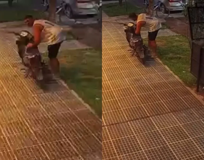 El hecho quedó registrado mediante las cámaras de seguridad, donde se puede ver que el ladrón se acerca a la moto estacionada en la vereda, forzó el manubrio y se la llevó como si nada.