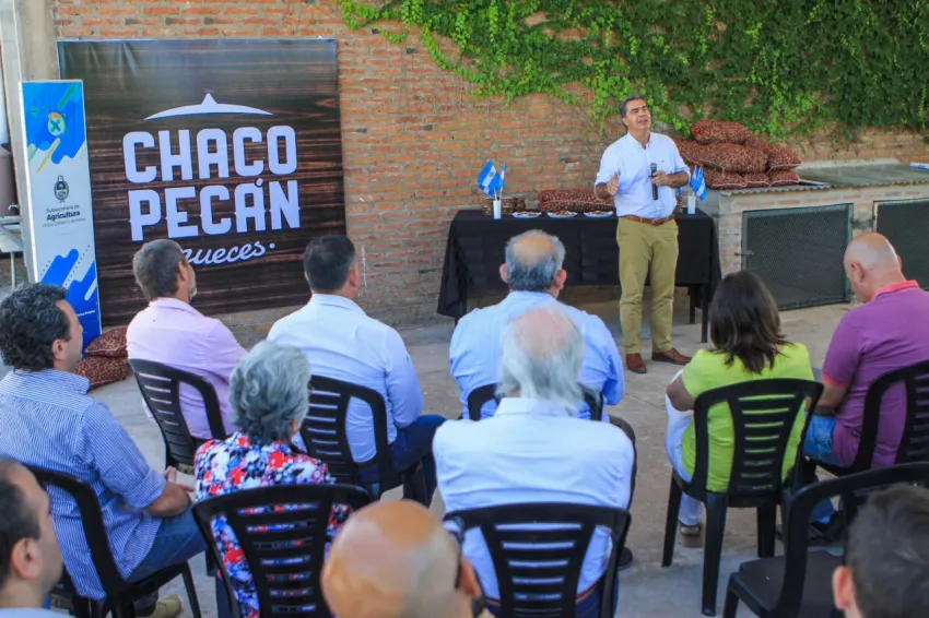 El mandatario provincial Jorge Capitanich presentó, este miércoles en Colonia Popular, el programa Chaco Pecan con Ganadería Integrada cuyo objetivo es aumentar la implantación de ese tipo de nuez en la provincia. Para ello el Consejo Federal de Inversiones (CFI) dispone de $100 millones que serán dirigidos en créditos para diversificar la producción de productores con disponibilidad de 1 a 5 hectáreas para implantación del cultivo y acceso a una fuente de agua para instalación del riego.