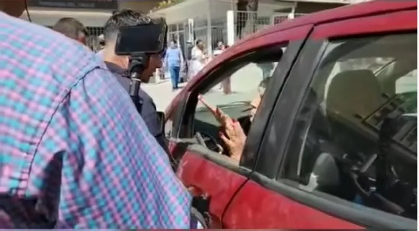 La conductora de una camioneta marca FORD, color bordo, desde el interior se encontraba a los gritos amenazando con "prender fuego todo".