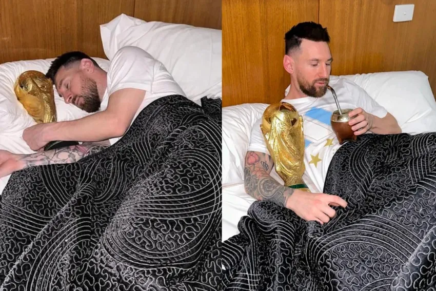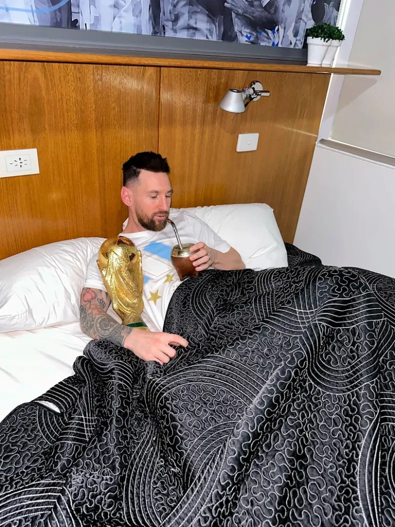 Hermoso despertar: Messi durmió con la Copa del Mundo y compartió una foto horas antes del gran festejo con los hinchas