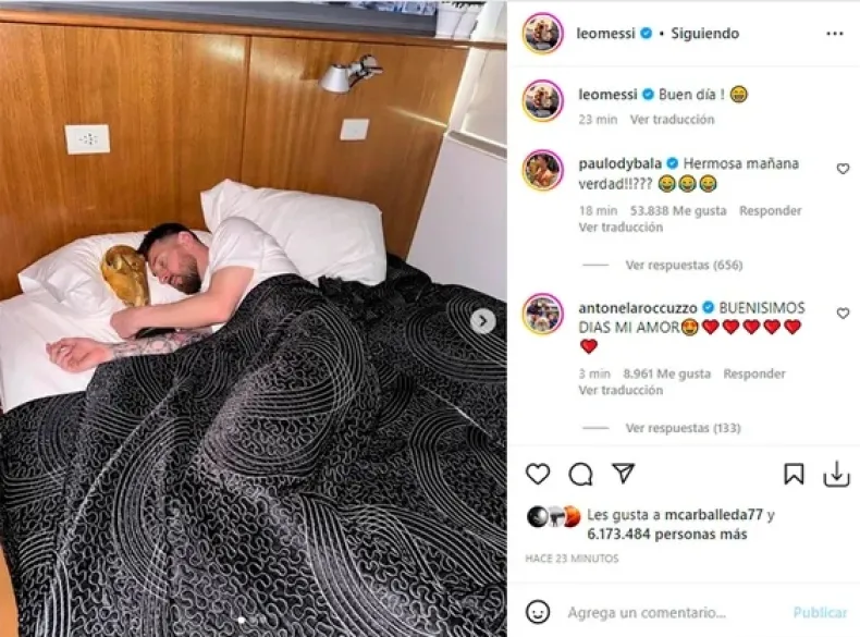 Además, "la Joya", Paulo Dybala, dejó un comentario para su capitán: "Hermosa mañana, ¿verdad?".