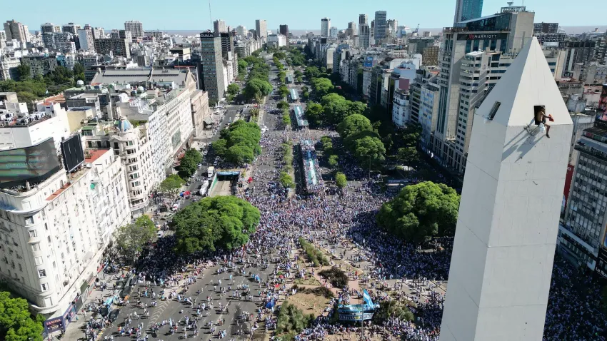 Una multitud de fanáticos ya se encuentran en las inmediaciones del obelisco con el fin de poder ver el trofeo y a los jugadores que participarán del festejo.