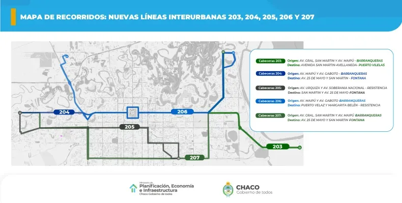 Se incorporarán nuevas líneas: la 203, 204, 205, 206 y 207 que conectarán de forma directa Fontana con Barranqueras y Barranqueras con Puerto Vilelas además de incluir nuevos recorridos en las zonas Sur y Norte de Resistencia.