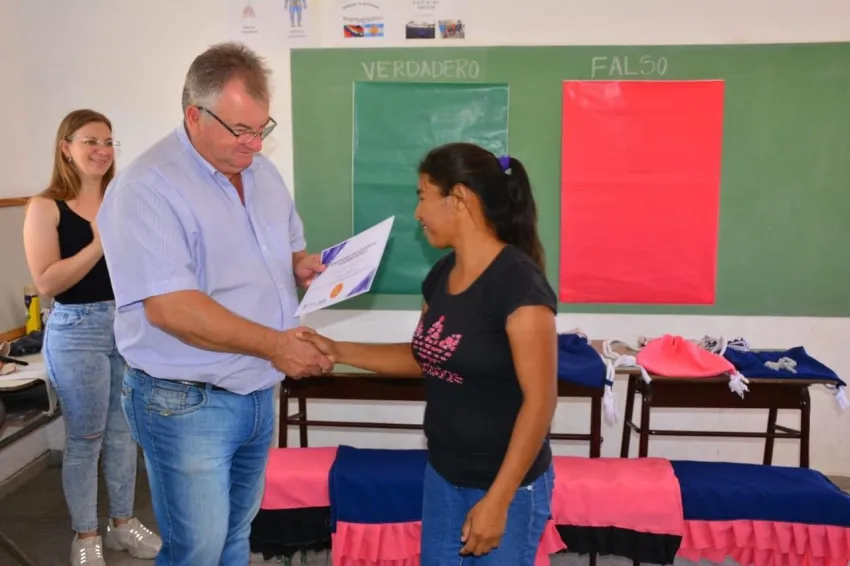 Este martes 20 de diciembre junto al intendentetaller castelli, y la secretaria de Producción y Desarrollo Local taller castelli, la secretaria de Igualdad y Género se llevó adelante el cierre del taller de "Corte y Confección", que forma parte del proyecto "Tejiendo Redes", el cual se venía dictando en el paraje Puerta Negra.