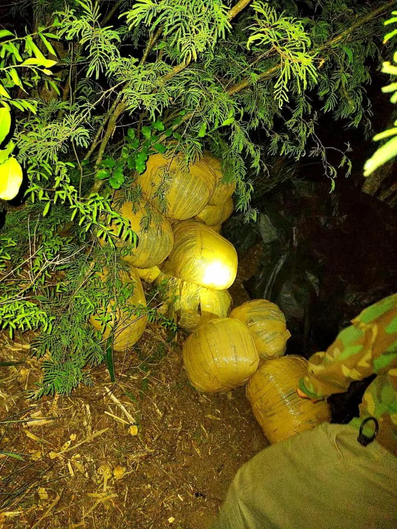 Seguidamente, dieron alerta a otro grupo de agentes que se acercaron hasta el lugar y comenzaron con los rastrillajes pertinentes con ayuda de linternas. Minutos después, se toparon con un total de 17 bultos grandes, donde procedieron a realizar el corte del mismo y detectar lo que contenía en su interior.