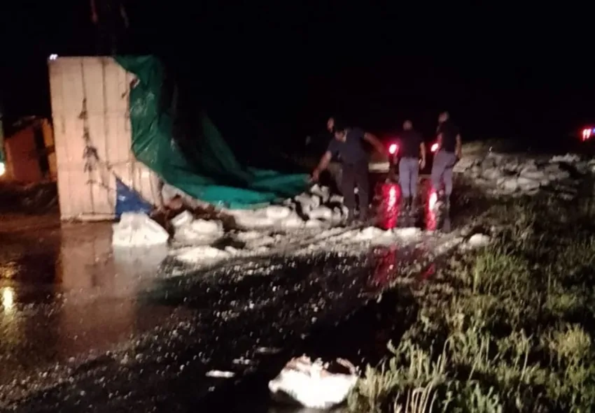 Un camión que transportaba harina volcó sobre la Ruta 95: investigan las causas