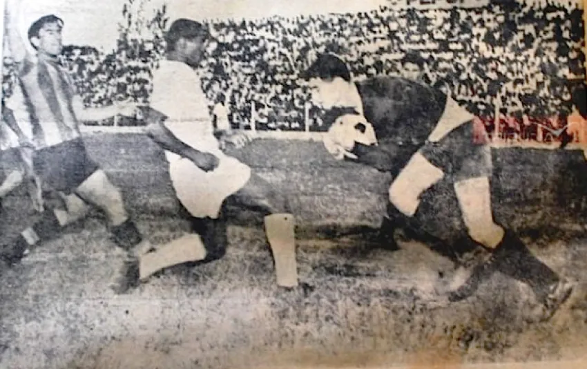Con el arbitraje de Beni Guazzardi, los presentes quedaron sorprendidos cuando el partido comenzó y el equipo local superaba ampliamente a los "favoritos". Podrá culparse a la falta de preparación o, si se quiere, falta de motivación de los jugadores del Santos, pero el equipo aurirrojo había salido al campo de juego con la convicción de llevarse la victoria aquella tarde de verano chaqueño.