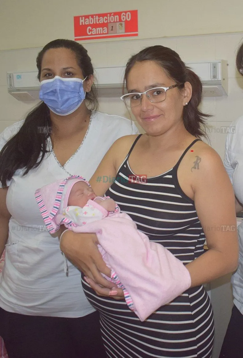 Ana Luz que nació a las 00:40 horas de este primero de enero, con un peso de 2,850 kilogramos. Su mamá, Rocío, oriunda de la localidad de Charata, dijo que es su tercer hijo.