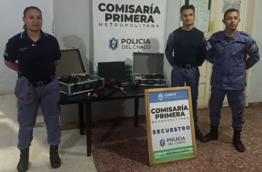 Los agentes al revisar los maletines verificaron que en el interior contenía una notebook, una placa de sonido, un auricular, un micrófono y distintas herramientas de sonido. De esa manera, el delincuente fue trasladado hacia la Comisaría Primera lugar donde quedó alojado.